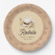 Um Pequeno Cowboy Western Baby Paper Plates personalizado para a Mamãe ficar com seu nome e data do evento de Chá de fraldas. As placas de papel se coordenam perfeitamente com outros produtos da coleção.