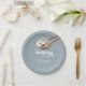 Estas placas de papel de chá de fraldas de formato simples são a adição perfeita a uma celebração única e divertida. Apresentando um belo manguezamento segurado por pauzinhos, aliado a tipografia divertida, esta design adota uma estética quente e acolhedora. O fundo azul suave melhora o tema, fazer ideal para um chá de fraldas temático de soma escura. Com o nome do futuro pai, estas placas de papel acrescentam um toque personalizado enquanto unem perfeitamente a decoração do chá de fraldas. Perfeito para servir deliciosos doces enquanto celebra a chegada de um pequeno, esses pratos trazem charme e diversão para qualquer cenário de chá de fraldas.