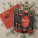 Um toque de gótica, corações e conexão eterna. O design apresenta um design de fundo escuro e elegante que imediatamente desenhar atenção. Vários corações vermelhos brilhantes, alguns aparentemente se transformaram em colírios, penduram em cordas delicadas e finas, emprestando ao cartão um toque lúdico e romântico. O centro é dominado por um quadro articamente desenhado com um interior vermelho, decorado com um delicado padrão de rosa simbolizando amor e paixão. No fundo, buquês exuberantes de rosas vermelhas com verde esmagador adoram a carta, sublinhando a atmosfera romântica.