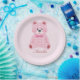Prato De Papel Ursinho Gingham Rosa