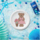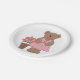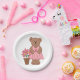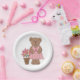 Prato De Papel Urso de Consciência do Cancer em Vestido Rosa