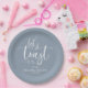 Um prato de papel elegante para festa de compromisso com caligrafia. Fácil de personalizar com seus detalhes. PERSONALIZAÇÃO: Se você precisar de personalização do design, por favor entre em contato comigo pelo chat; se você precisar de informações sobre o seu pedido, opções de envio, etc., por favor entre em contato com o suporte da Zazzle diretamente.
