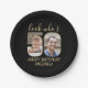 Olha quem tem 50 anos! Adicione um toque elegante personalizado a 50ª decoração de festa de aniversário para ele ou para ela com placas de papel redondo de fotos personalizadas na moda. As fotos e o texto neste modelo são simples de personalizar (DICA DE IMAGEM: Uma maneira fácil de posicionar uma foto exatamente como você deseja é recortá-la antes de carregá-la no site do Zazzle.) O design preto e dourado apresenta duas imagens de sua escolha, caligrafia moderna com script manuscrito e tipografia clássica com deco de arte de vintage. Observe que o ouro é impresso a cor, não a folha metálica. A design neutra do ponto de vista do gênero também é adequada para um homem ou para uma mulher. Feliz 50º aniversário!
