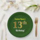 Prato De Papel Verde, Faux Dourado 13 Aniversário + Nome Personal