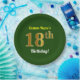Este simples, personalizado, design de placa de papel com tema de aniversário apresenta uma mensagem personalizável, como "Custom-Name’s 18th Birthday!", onde o nome pode ser alterado, e com o "18º" com uma aparência falsa/de imitação em forma de ouro. Ele também apresenta um fundo de cor verde. Chapas de papel como estas poderiam talvez ser usadas numa festa que está a ser realizada para celebrar o décimo oitavo aniversário de alguém. [~Z0000145]