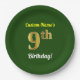 Prato De Papel Verde, Faux Dourado 9º Aniversário + Nome Personal
