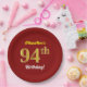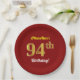 Prato De Papel Vermelho, Faux Dourado 94.º Aniversário + Nome Per