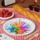 Prato De Papel Vibrant Rainbow Paint Splatter Explosion