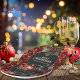 These disposable Christmas party plates are ideal for appetizers, desserts, or snacks, making cleanup a breeze. Personalize the text to display your own family name or a custom message, creating truly unique and memorable holiday tableware. Elevate your festive table decor with this unique, highly-rated design. Matching accessories are available in our Crimson Velvet Cristmas Party Suite.