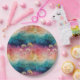 Vintage dandelion abstract pattern paper plate featuring delicate seed heads layered over rich teal, pink, and muted purple watercolor textures. Dreamy and artistic with an ethereal mixed-media aesthetic, this seamless design is ideal for botanical art lovers, boho style fans, nature enthusiasts, and vintage-inspired decor admirers.
