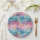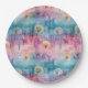 Vintage dandelion abstract pattern paper plate featuring delicate seed heads layered over rich teal, pink, and muted purple watercolor textures. Dreamy and artistic with an ethereal mixed-media aesthetic, this seamless design is ideal for botanical art lovers, boho style fans, nature enthusiasts, and vintage-inspired decor admirers.