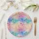 Vintage dandelion abstract pattern paper plate featuring delicate seed heads layered over rich teal, pink, and muted purple watercolor textures. Dreamy and artistic with an ethereal mixed-media aesthetic, this seamless design is ideal for botanical art lovers, boho style fans, nature enthusiasts, and vintage-inspired decor admirers.