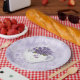 Este prato de papel Violeta no Bule de Chá apresenta arte desenhada por rato e é perfeito para uma cozinha com estilo Shabby Chic.