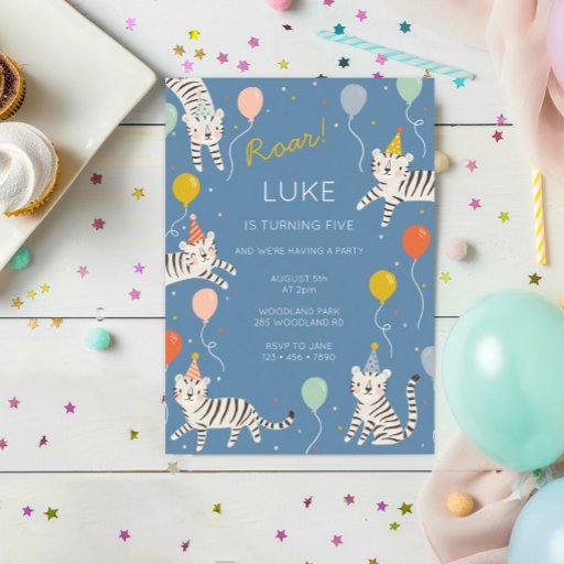 Uma placa de papel divertida e colorida para um tigre de aniversário temido. Personalize facilmente este design com os detalhes do seu partido! Verifique nossa coleção de correspondência para coordenar itens.
