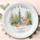 Essa design encantadora mostra uma ilustração encantadora de um cervo cercado por pinheiros, criando um tema caprichoso e inspirado na natureza para a ocasião especial. A paleta de cores suaves e detalhes intrincados tornam esta design perfeita para uma celebração neutra em termos de gênero, seja um menino ou uma menina a caminho. Imprima os convidados e defina o tom para um evento memorável.