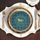 Uma xadrez verde de caçador clássico e marinho azul-tartan, com placas de papel personalizadas e testadas para elevar o decor do chá de fraldas com elementos equestres e xadrezes com sotaques dourados. Uma silhueta de cavalo trotting, ouro, enfeita o centro e o padrão tartano adiciona um toque eterno. Perfeito para um chá de fraldas tematizado de "Old Money" com um sentimento clássico, vintage e luxuoso. Se você gosta de vovô core, estilo vintage, este é um tema de chá de fraldas para você. Personalize adicionando seu próprio nome.