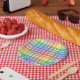 Prato De Papel Xadrez do arco-íris