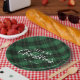 Adicione um toque festivo nesta temporada de férias, sirva seus convidados em estilo com nossas placas festivas de papel festivo. Design apresenta um padrão de xadrez verde diagonal com "Feliz Natal" em letras brancas escritas à mão. Personalize com seu nome de família.