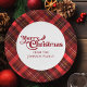 Um padrão clássico de tartan vermelho-xadrez por trás de sua mensagem de Feliz Natal com seu nome personalizado em placas de papel de festas de Natal. Uma decoração jante festiva e tradicional com linhas vermelhas e douradas.