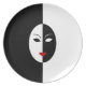 A placa do jantar/partido com máscara impressionante e original da arte moderna projeta no preto, no branco e no vermelho.