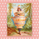 Olá Açúcar, uma ilustração antropomórfica encantadora e excêntrica apresenta uma mulher envolta em uma tigela de açúcar cercada por uma floresta. O cartão comercial vitoriano aprimorado exibe a textura pontilhada típica da impressão colorida desta época. É perfeito para decoração de cozinha e sala de jantar, cadernos, cartões e produtos relacionados a alimentos.