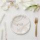 Um prato de papel para casamento minimalista clássico com um motivo damasco desenhado à mão e tipografia elegante e sofisticada. Escolha uma cor que reflita seu estilo e personalize-o simplesmente com seus detalhes.