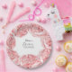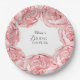 Pratos de festa para chá de panela com adoráveis peônias aquareladas, flores rosa suave e folhas esmeralda.
