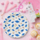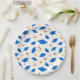 Pratos de papel para festa mostrados com uma celebração de estampa de gorros de formatura.