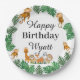 Celebre seu aniversário especial com os animais da selva Safari inspirados em placas de papel. Personalize facilmente estes pratos com o nome do seu filho e o aniversário para um toque de um tipo. Adicione um toque final à decoração de aniversário com estas placas coloridas de papel com tema safari da selva! Perfeito para uma selva, uma celebração temida safari.