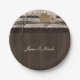 Pratos de Noiva Rústicos Românticos de Sacaria com Renda e Madeira. Personalize com qualquer texto. Itens combinando disponíveis.