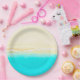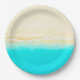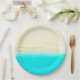 Orla oceânica, água azul turquesa, praia arenosa, pratos de papel perfeitos para um casamento ou chá de bebê com tema de praia.