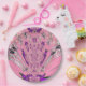 Lindos Pratos de Papel Monograma Rosa Bebê e Roxo