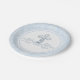 Pratos de papel para batismo de menino com lindo redemoinho de pérola azul em cruz sobre um fundo de damasco azul. Estes elegantes pratos de papel azuis para batismo são facilmente personalizados simplesmente adicionando texto. Você também pode mover a cruz conforme necessário nestes pratos de papel para batismo, batizado e primeira comunhão.