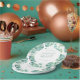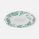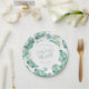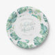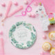 Pratos personalizados com ilustrações botânicas para o seu casamento com tema tropical ou luau, ou chá de noiva, apresentam uma borda de folhagem de monstera e palmeiras com o nome do noivo e da noiva personalizado e a data do chá. Para ver a decoração de festa com tema de praia aloha correspondente, visite www.zazzle.com/dotellabelle