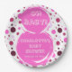 Celebre a chegada iminente do bebê com estes pratos de papel para chá de bebê com bolinhas rosa e pinceladas!