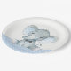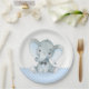 Pratos de papel para chá de bebê de elefante menino com adorável elefante bebê menino usando uma gravata borboleta preta em um fundo azul bebê e bolinhas cinzas. Você pode adicionar texto para personalizar esses doces pratos de papel para chá de bebê de elefante menino. Você também pode adicionar uma cor de fundo a esses adoráveis pratos de papel para chá de bebê de elefante.