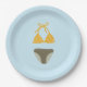 Maiô de duas peças verde e dourado em um prato de papel. Perfeito para a sua festa de piscina.