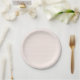 Padrão tribal em estilo herringbone rosa suave e branco em prato de papel para chá de bebê ou qualquer festa feminina. Padrão divertido e doce.