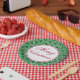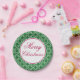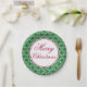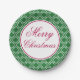 Um vibrante padrão verde decora estes pratos de papel festivos Feliz Natal. Estes pratos de papel são ótimos para o Natal, jantar de Natal, uma festa de Natal, festa de feriado, festa de escritório, casa aberta, troca de biscoitos, troca de biscoitos, escola, igreja, etc... O design é de arte original.