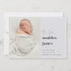 O cartão de anúncio de nascimento mínimo moderno em neutrais legal apresenta uma foto vertical ou orientada para retratos alinhada à direita com "Oi, eu sou [Nome]" ao lado. Personalize com a data de nascimento do bebê, estatísticas e uma assinatura familiar, e adicione três fotos quadradas adicionais às costas.