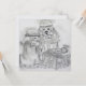 Um desenho a lápis preto e branco de dois lençóis, um ajoelhado e um de pé olhando para o bebê Jesus em uma mangueira.