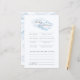 Convide os convidados a compartilhar suas ideias com nosso jogo de Predições de Bebê da Nuvem Azul Watercolor no seu Chá de fraldas. As aquarelas azuis suaves e os sotaques de nuvens lúcidas criam uma atmosfera sonhadora, melhorando a celebração alegre. Este jogo combina elegância e elegância, e fazer-o como uma adição encantadora às suas festividades. Envolva seus hóspedes com o encantador apelo da Watercolor Blue Cloud Baby Predictions, transformando a celebração em uma experiência memorável e interativa para todos.