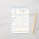 Capture memórias inesquecíveis com este cartão de previsões e conselhos para bebês Silly Goose Is Soon to Be on the Loose. Com o fundo xadrez azul coordenado e o doce ganso com laço coquette, este cartão de lembrança para chá de bebê convida os convidados a compartilhar conselhos, previsões e votos de felicidade. Combine com o livro de visitas, convites e cartões de agradecimento da coleção de chá de bebê Silly Goose para uma experiência de chá de bebê do menino coesa e significativa.
