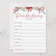 Adicione diversão festiva à sua comemoração com o nosso cartão de Chá de fraldas de Natal "Predictions For Baby". Apresentando designs encantadoras, com temas de férias, este cartão convida os convidados a fazer suas previsões sobre a data de chegada do bebê, peso e muito mais. Perfeito para um chá de fraldas temático de Natal, cria um elemento interativo e alegre que pode ser apreciado como um guardião. Escolha nossa placa "Predictions For Baby" para adicionar um toque de alegria e entusiasmo de feriado ao seu dia especial.