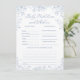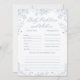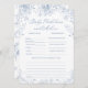Celebre o seu pequeno com esta previsão personalizada de chá de fraldas azul e cartão de jogo de conselho! Perfeito para ideias de chá de fraldas azul e chá de fraldas, garoto, este design encantador é ideal para um chá de fraldas primavera. Com flores delicadas, ele complementa temas de chá de fraldas e ideias de chá de fraldas de primavera de forma elegante. Um imperativo para as ideias do chá de fraldas floral, este cartão de jogo adiciona um toque divertido ao seu chá de fraldas azul. Abraçar o bebê em tema florescente com esta adorável adição ao bebê em ideias de chá florescente, temas de chá de fraldas e de menino.