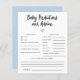 Previsões e cartão de aconselhamento de um chá de fraldas cardíaco azul moderno e bonito. Os textos são editáveis. Um jogo perfeito para jogar durante o chá e definitivamente será um excelente! O cartão aos hóspedes para predizer como o bebê se pareceria. Projetado para o chá de fraldas de um menino.