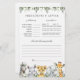 Os animais Safari temem previsões de chás de fraldas e cartões de jogo de aconselhamento apresentam uma ilustração de animais safari com aquarela e verde-aquarela eucalipto garland e uma elegante fonte de estilo manuscrito.