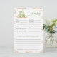 Crie uma atenção sincera com este cartão de conselhos e previsões de bebês. Estimulada com dragões aquosos, nuvens sonhadoras e estrelas, esta carta convida os convidados a adivinhar detalhes de bebês e a compartilhar palavras de sabedoria para os futuros pais. Uma atividade significativa que duplica como uma memória tesourada do seu chá de fraldas dragão.