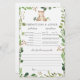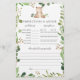 Previsões do chá de fraldas temático do urso e cartão de jogo de conselho apresentam uma ilustração do urso de aquarela e verde-aquarela eucalyptus garland e uma elegante fonte de estilo manuscrito.