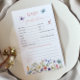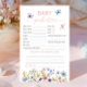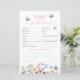 Faça memórias e compartilhe sabedoria com estas borboletas brancas de flores silvestres Predições de bebês e placas de conselho! Apresentando delicadas borboletas aquáticas e flores silvestres florescentes, estas cartas lindamente desenhadas permitem aos hóspedes preverem os detalhes de chegada dos bebês e oferecer conselhos incríveis aos futuros pais. Um perfeito guardião para um chá de fraldas gigante, rústico ou de temática floral!